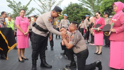 Dalam upacara kenaikan pangkat tersebut, perwakilan yang naik pangkat maju dan dipasangkan tanda pangkat baru oleh Kapolres Batu Bara.