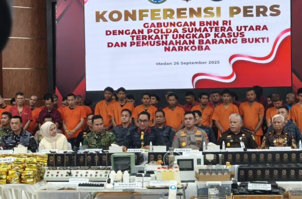 Pengungkapan 1,4 ton narkotika pada 21 September 2025 oleh BNN RI bersama Polda Sumatera Utara.