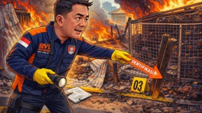 Tim Inafis Polres Batu Bara Identifikasi TKP Kebakaran Kios Ponsel.