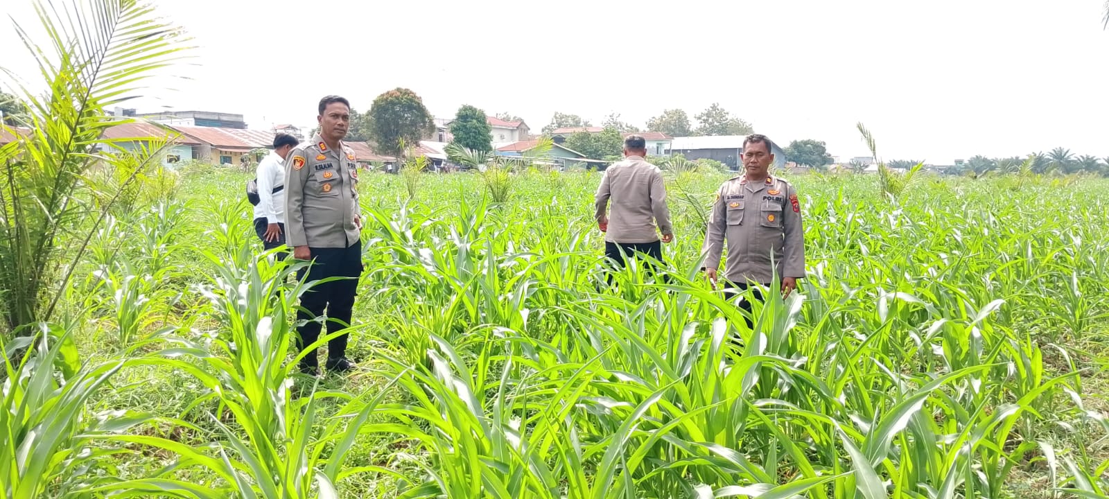 Turut mengikuti kegiatan tersebut adalah Wakapolsek Indrapura IPTU M. Siregar S.H, Kanit Binmas Polsek Indrapura IPDA J. Nainggolan, serta beberapa personil operasional Polsek Indrapura. Dalam proses pengecekan, tim secara langsung mengamati kondisi fisik lahan, ketersediaan unsur hara, dan pertumbuhan tanaman jagung yang telah ditanam beberapa minggu lalu.