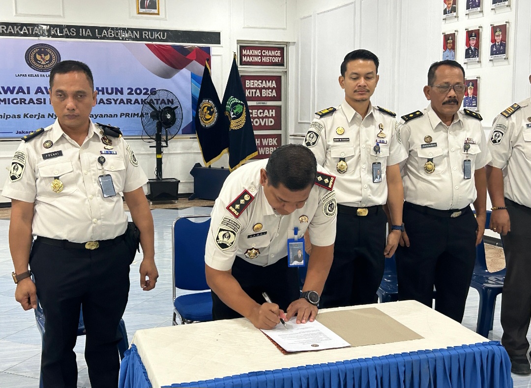 Kegiatan penandatanganan perjanjian kinerja tersebut diikuti oleh Kepala Lembaga Pemasyarakatan Labuhan Ruku, Hamdi Hasibuan, bersama pejabat struktural di Aula Lapas Labuhan Ruku.