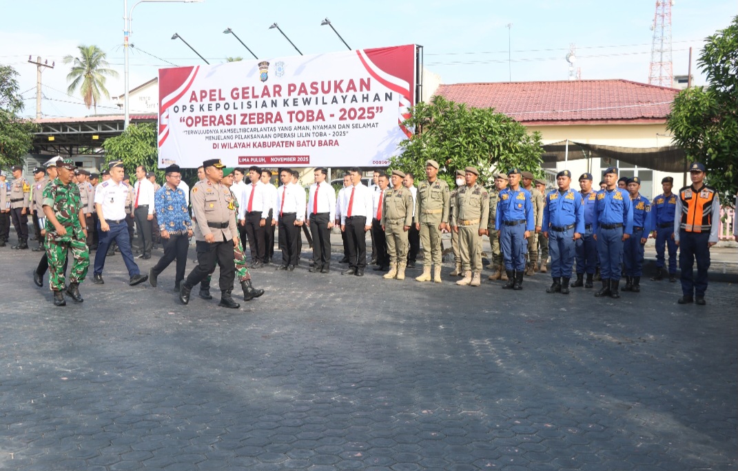 BATU BARA | Sumutmerdeka.id – Apel Gelar Pasukan Operasi Zebra Toba 2025 dilaksanakan pada Senin, 17 November 2025, pukul 08.00 WIB, di Lapangan Apel Polres Batu Bara.