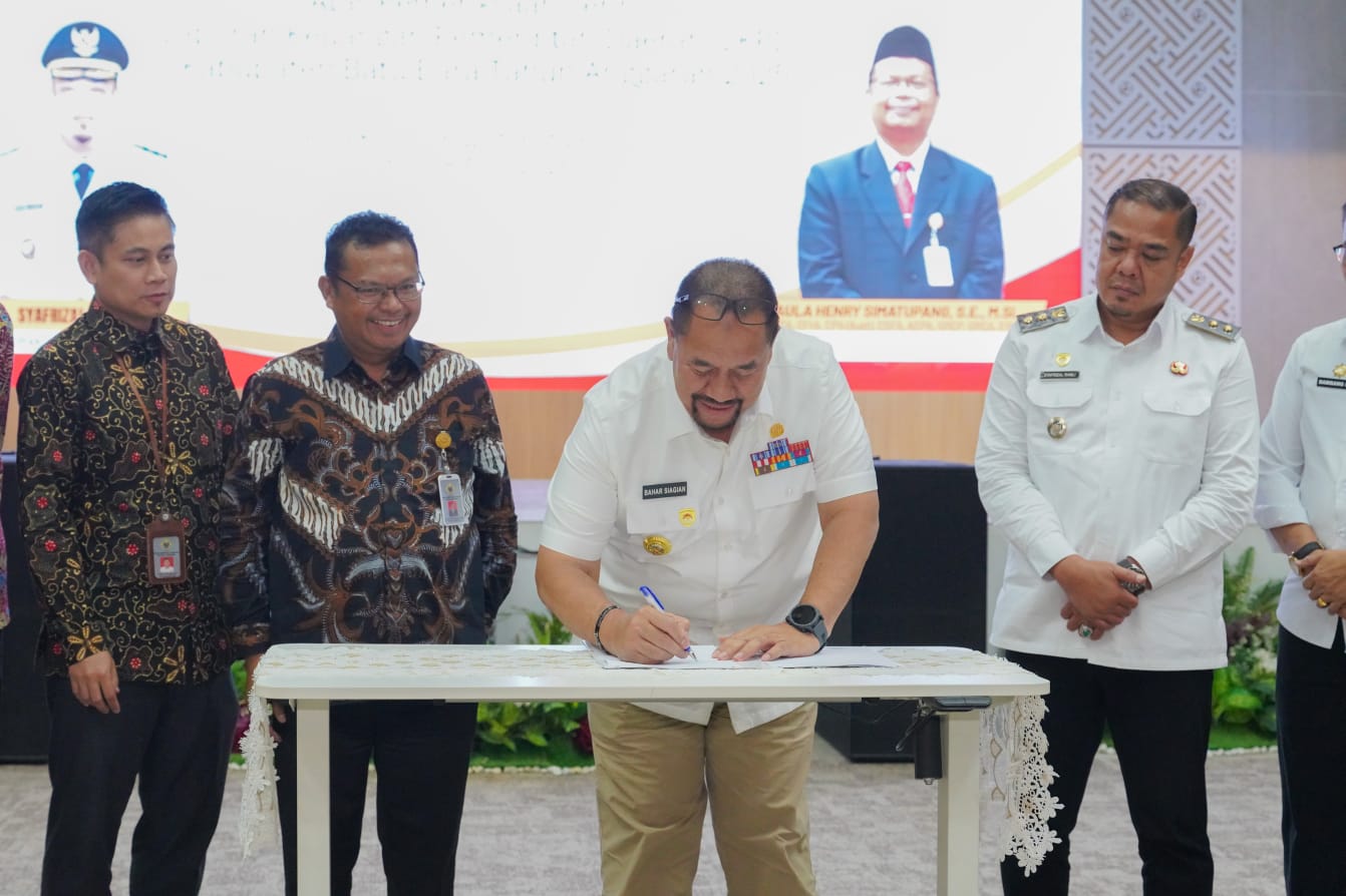 Dalam kesempatan tersebut, Bupati Batu Bara didampingi Wakil Bupati Syafrizal, S.E., M.AP., Plh. Sekda Batu Bara, para asisten, staf ahli, kepala OPD, serta para camat se-Kabupaten Batu Bara.
