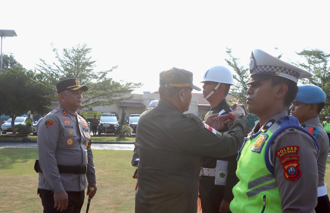 Penyematan Pita Tanda Operasi Ketupat Toba 2026 di pimpin oleh Pimpinan Apel.