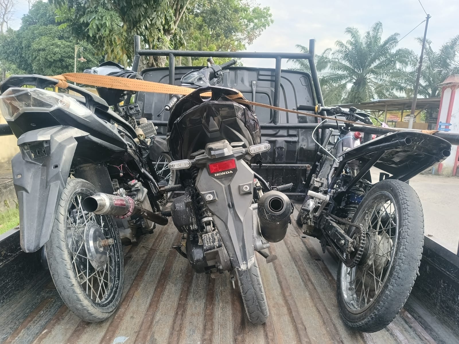 Dok. Ist-SM : Tiga Unit Motor Knalpot Brong Tanpa Plat Nomor Polisi di Sita Polsek Indrapura.