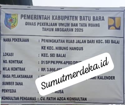 BATU BARA | Sumutmerdeka.id – Proyek peningkatan ruas jalan Sei Balai di Kecamatan Sei Balai, Kabupaten Batu Bara, Sumatera Utara, yang dikerjakan oleh CV Eka Musa dengan nilai kontrak Rp 3.866.458.340,00, kini menjadi sorotan publik karena kualitas pengerjaannya yang dipertanyakan. Proyek ini menggunakan anggaran APBD Kabupaten Batu Bara tahun 2025 dan telah selesai dikerjakan, namun tanpa informasi yang jelas tentang volume peningkatan ruas jalan. Jum’at 26 September 2025.
