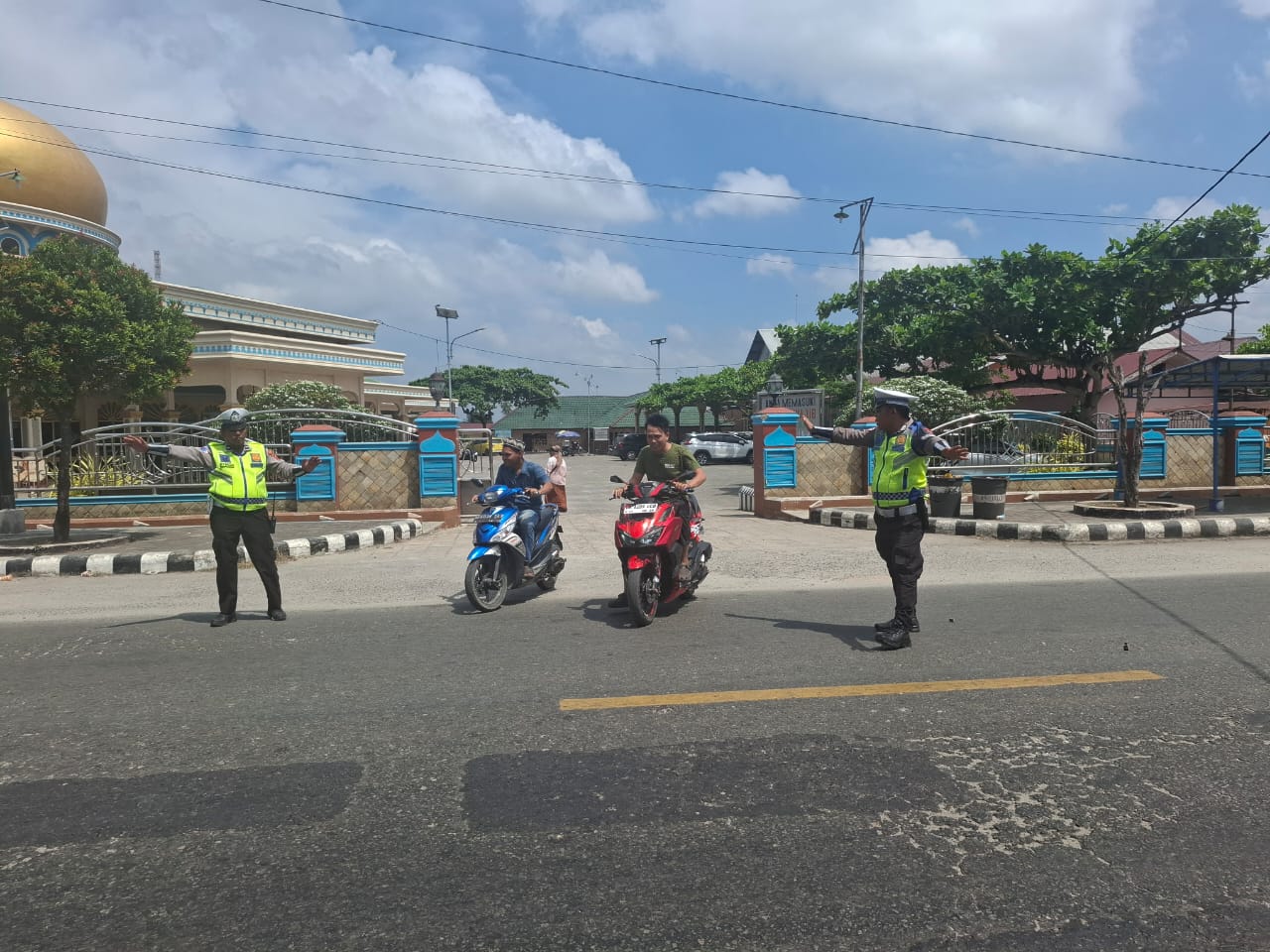 Masyarakat merasa aman saat akan menyeberang jalan dengan kehadiran Polri di Jalan. Tercipta situasi arus lalin yang tertib dan lancar di lokasi Mesjid.