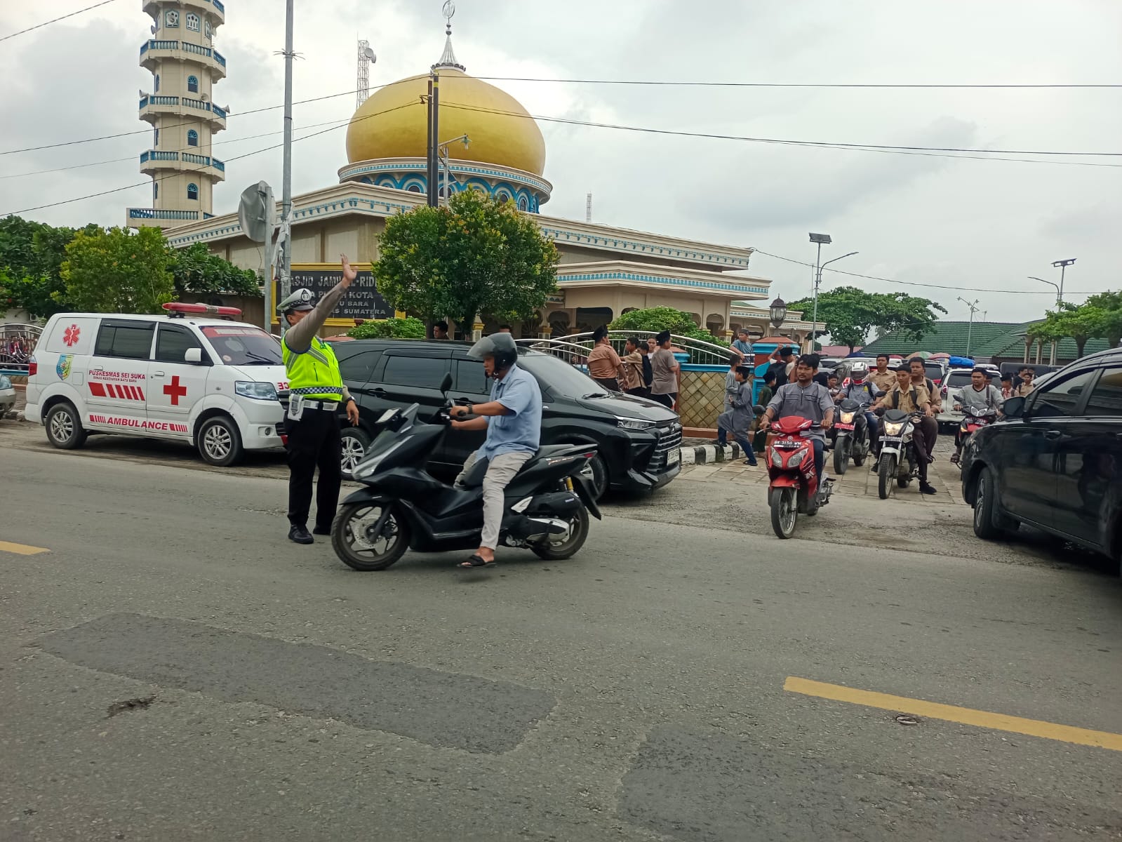 BATU BARA | Sumutmerdeka.id – Satlantas Polres Batu Bara melaksanakan kegiatan pengaturan lalu lintas pada usai melaksanakan Sholat Jum’at di depan Masjid Jami Al Ridha Lima Puluh Kota Kabupaten Batu Bara. Jum’at 03 Oktober 2025 pukul 13.00 Wib di Depan Masjid Jami Al Ridha Jalinsum Lima Puluh Batu Bara.
