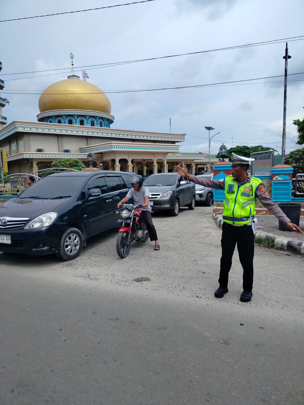 Personil Satlantas Polres Batu Bara melaksanakan kegiatan pengaturan lalu lintas pada waktu Sholat Jum’at Personil Satlantas Polres Batu Bara.