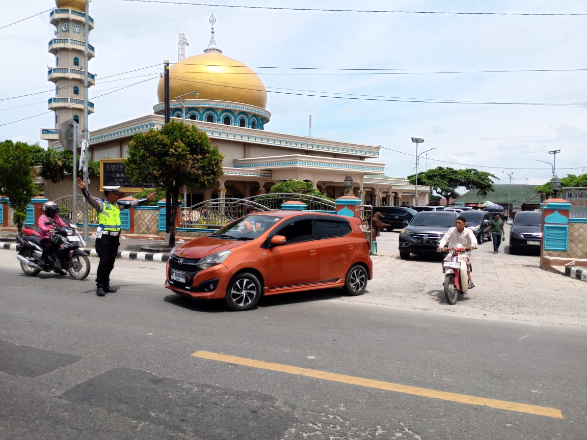Personil Satlantas Polres Batu Bara melaksanakan kegiatan pengaturan lalu lintas pada waktu Sholat Jum’at Kasatlantas Polres Batu Bara, AKP Simon E. Simatupang , S. H., M.H dan Para Kanit Satlantas Polres Batu Bara serta Personil Satlantas Polres Batu Bara.