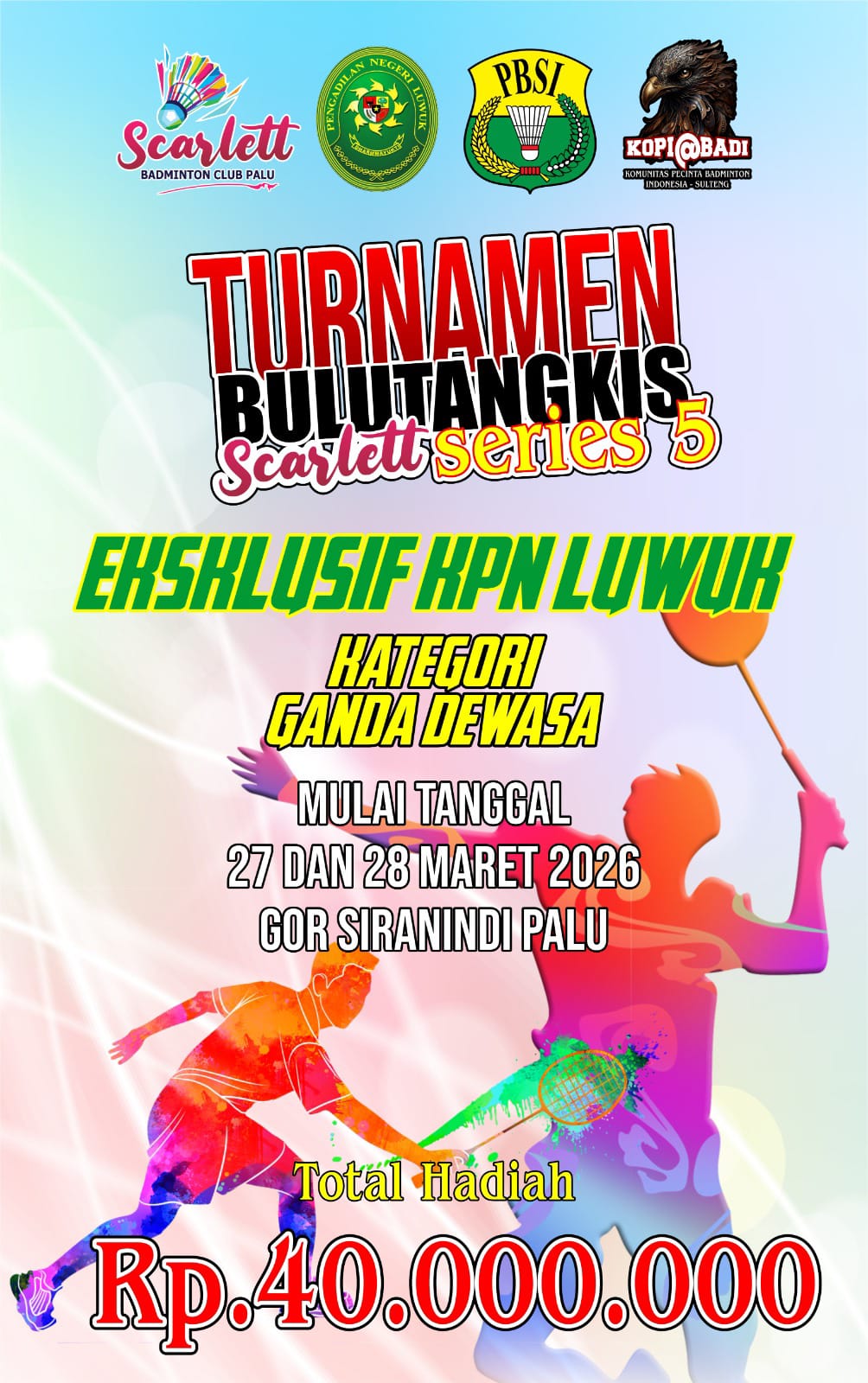 Turnamen Bulu Tangkis Scarlet Series ke-5 yang digelar secara eksklusif untuk keluarga besar PN Luwuk ini mempertandingkan kategori ganda dewasa.