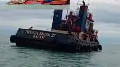 BATU BARA | Sumutmerdeka.id- Kapal tongkang yang membawa ratusan peti kemas dan tanki ditemukan karam…