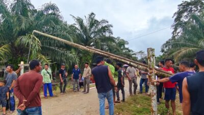 SUBULUSSALAM – Masyarakat Desa Tualang Palang Jalan Desa, atau akses utama keluar masuk mobil dan…