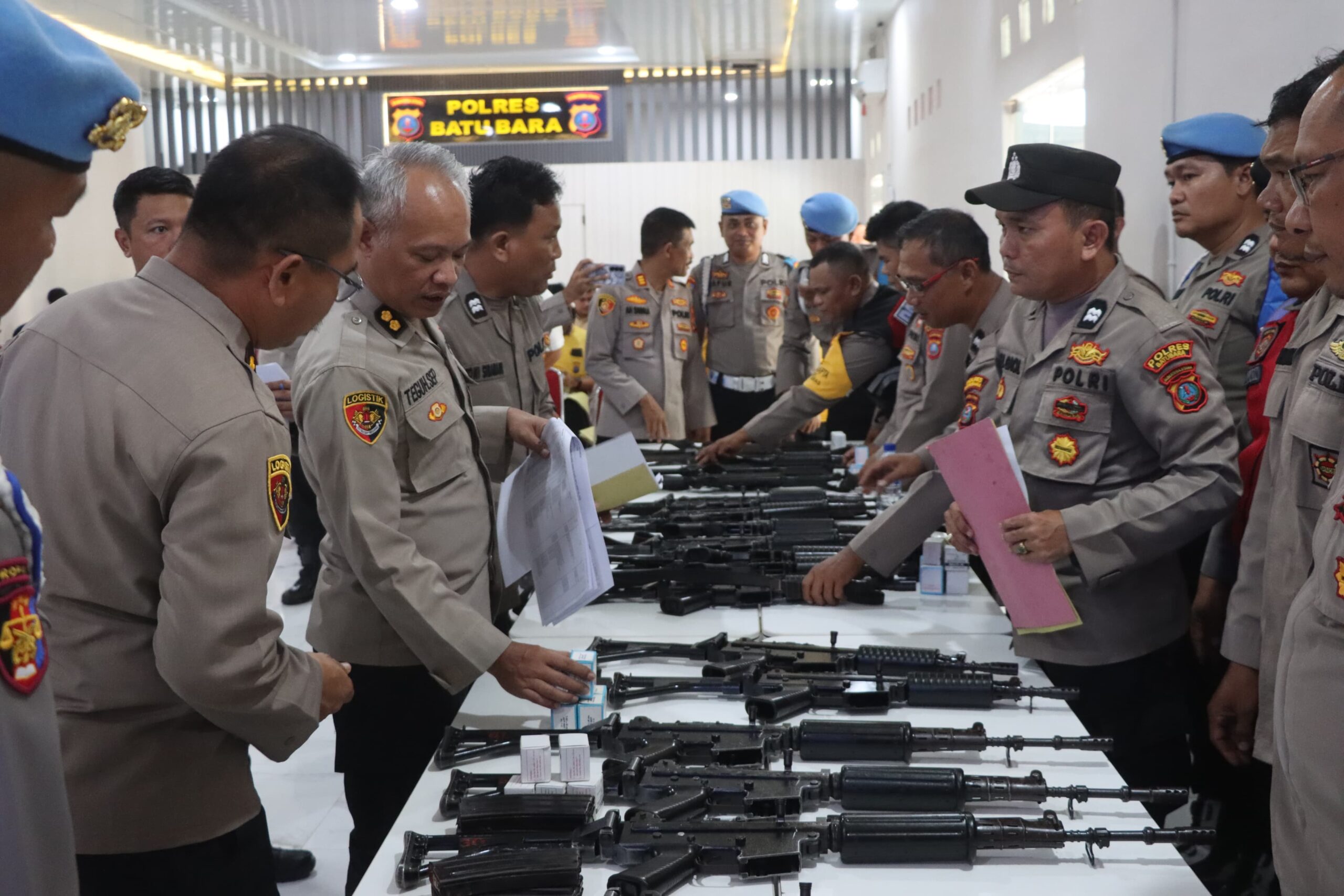 Tim Divisi Profesi dan Pengamanan (Divpropam) Polri bersama Staf Logistik (Slog) Mabes Polri melaksanakan pengecekan senjata api (senpi) di jajaran Polres Batu Bara. Sabtu (18/4/2026) pukul 11.00 Wib.