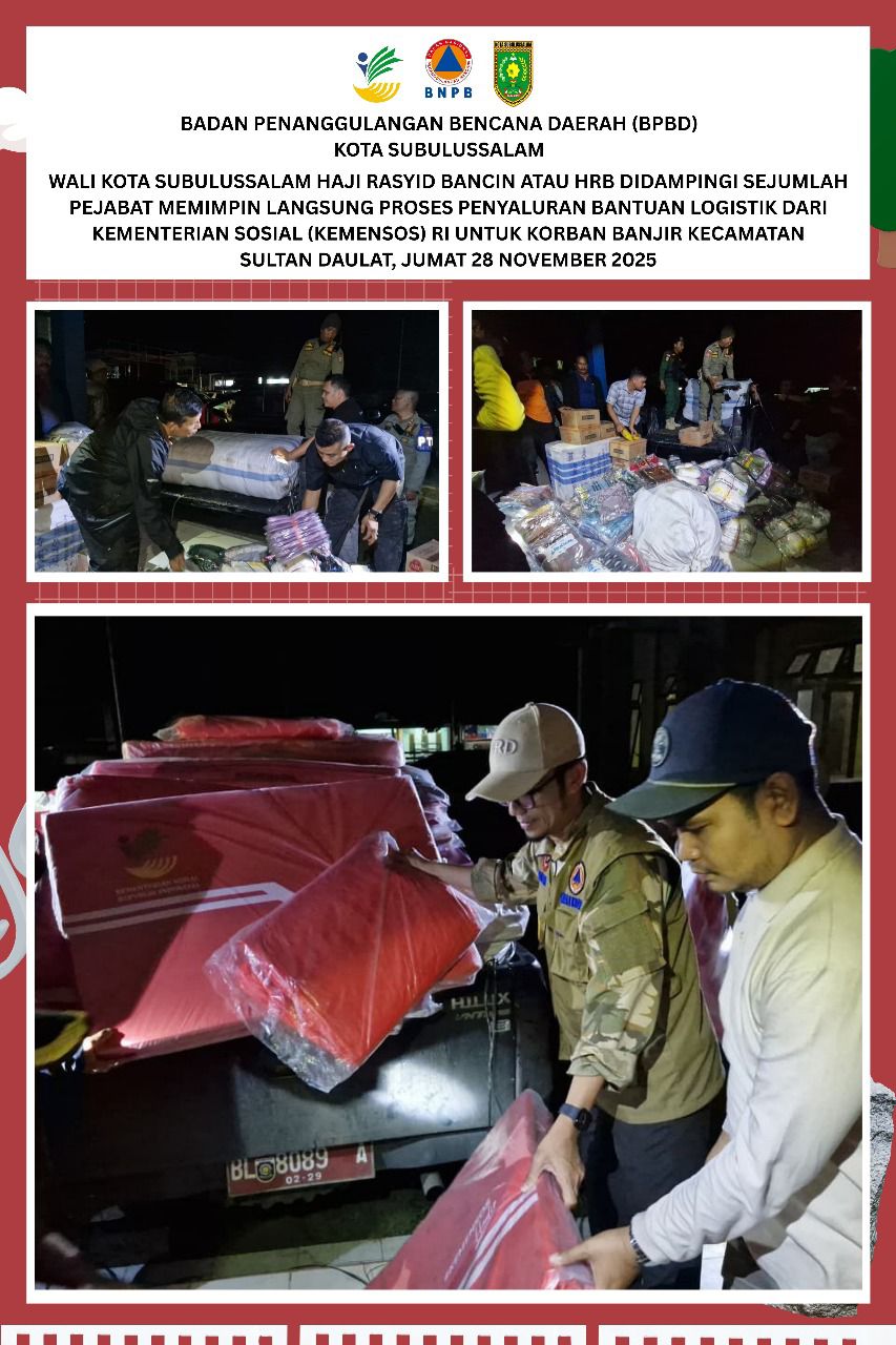 Kepala BPBD Kota Subulussalam, Ramadan Pinem, ST, MM, juga menyatakan bahwa semua bantuan yang ada, baik itu dari pusat, provinsi, maupun pemerintah kota, telah tersalurkan sesuai dengan jumlah warga yang terdampak banjir.
